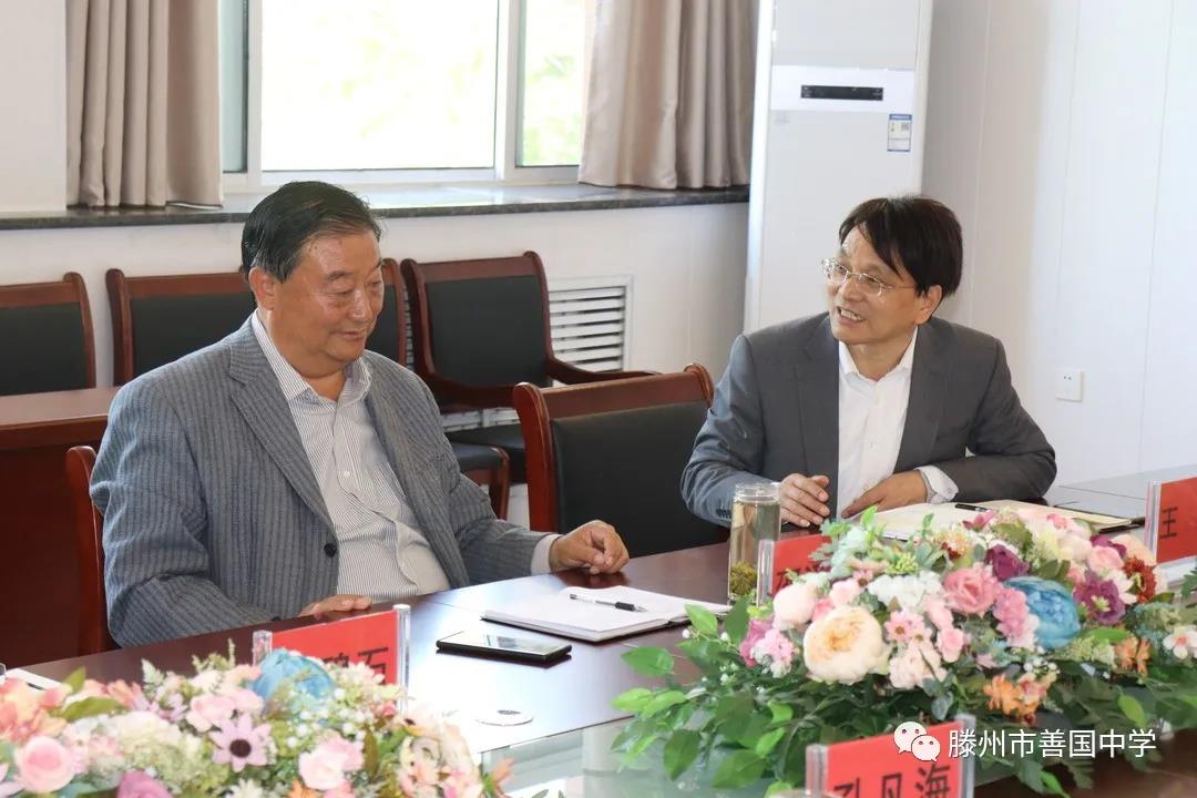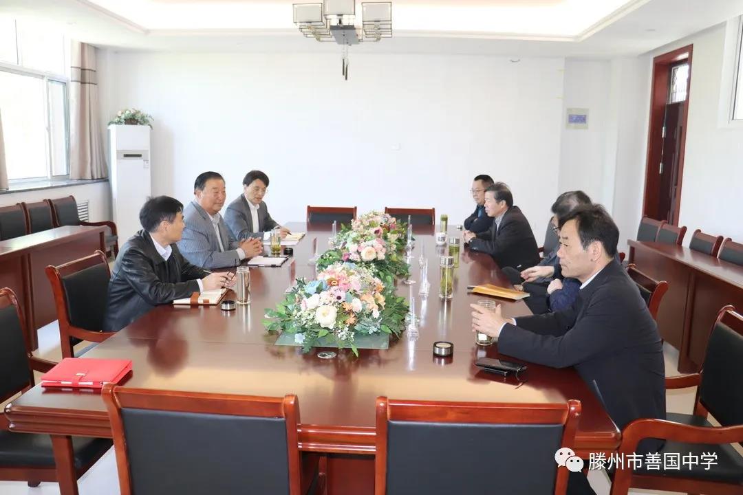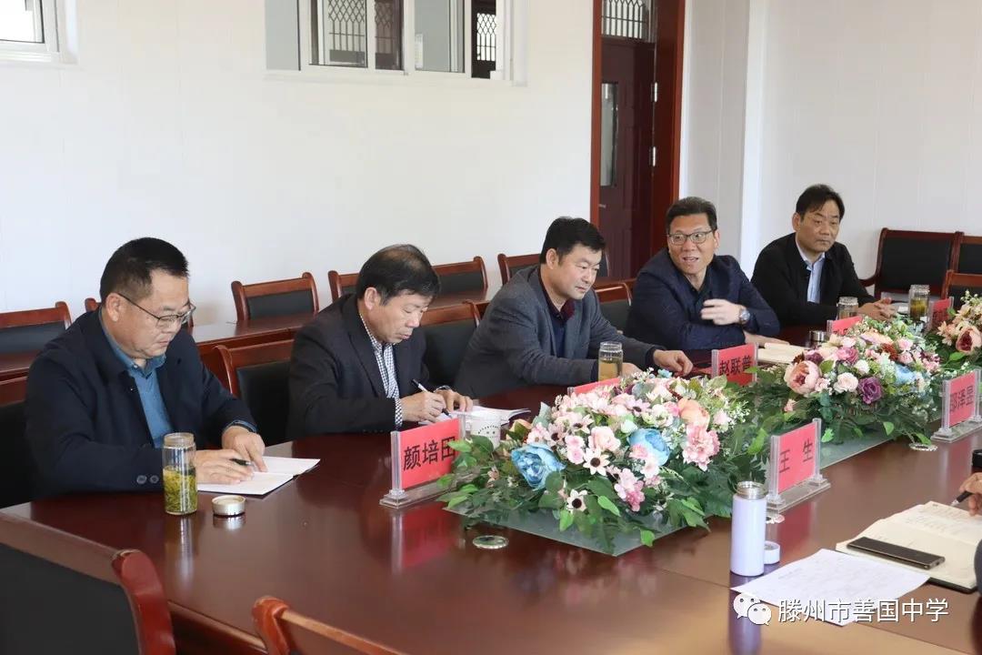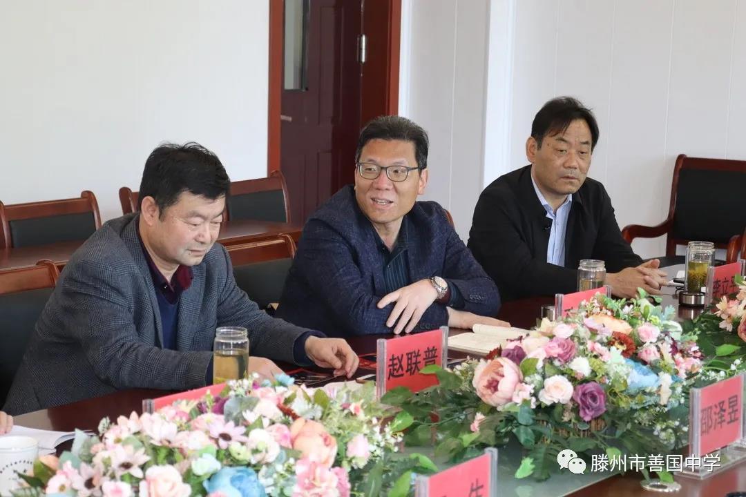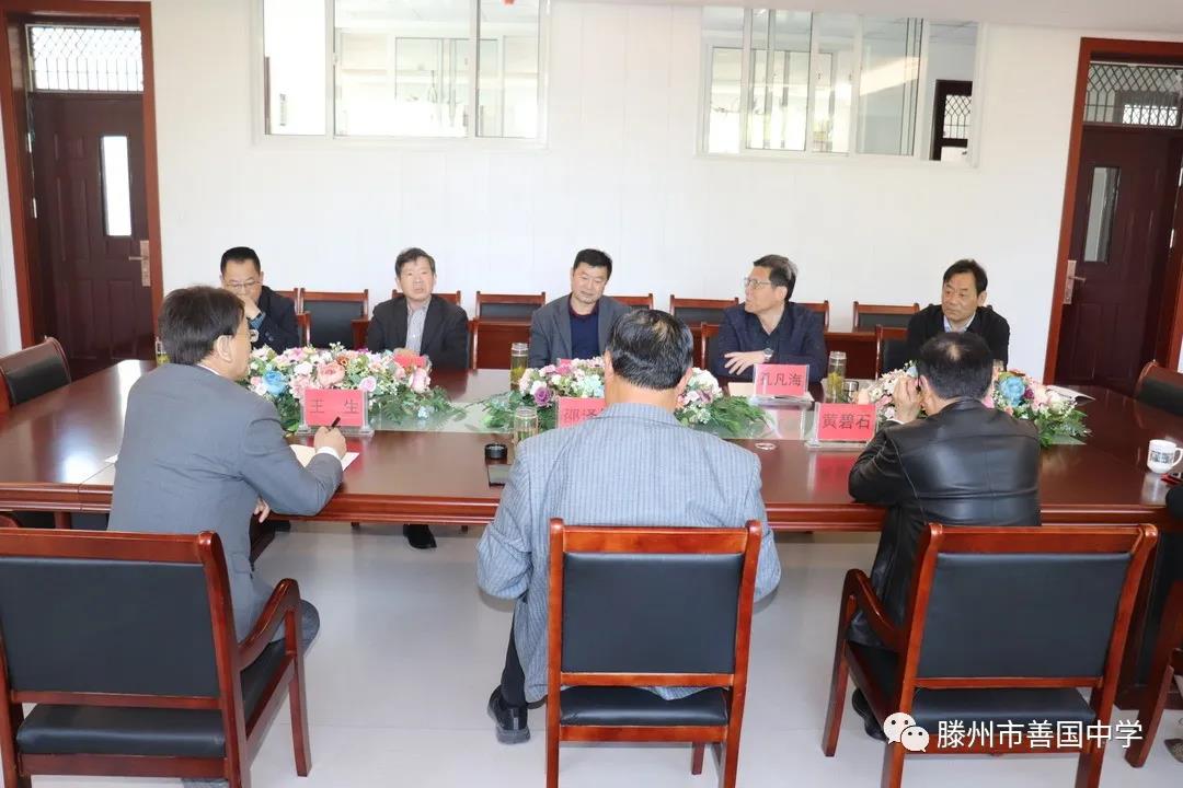 2021年4月17日上午9点30分 在善国中学召开了学校发展交流研讨会 参 加会议的有 善国中学董事长邵泽昱, 善国中学校长王生, 善国中学常务副校长黄碧石, 尚贤中学校长赵联普, 北辛中学校长孔凡海, 北辛中学通盛路分校长徐义新, 北辛中学善国校区校长李立平, 北辛中学善国校区副校长颜培田。
