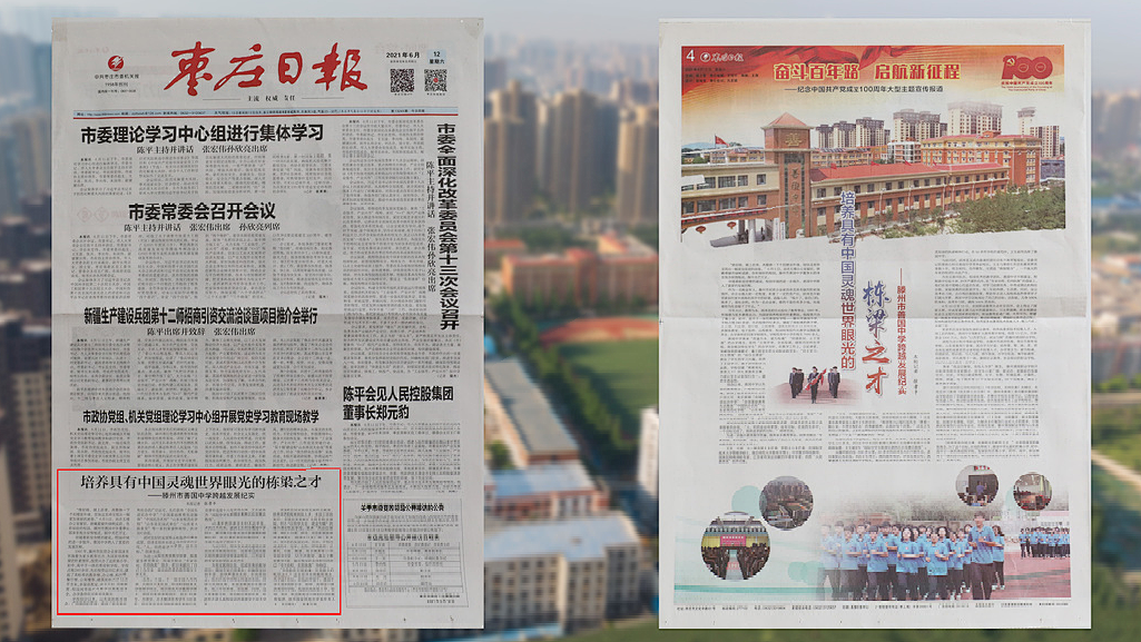 6月12日,《枣庄日报》头版以《培养具有中国灵魂 世界眼光的栋梁之才》为题,报道我校教育教学工作。同时,在第四版《奋斗百年路 启航新征程》纪念中国共产党成立100周年的大型主题宣传报道专栏中,整版报道了我校在立校、发展、跨越、特色的发展过程中取得的成绩。以下为报道全文: